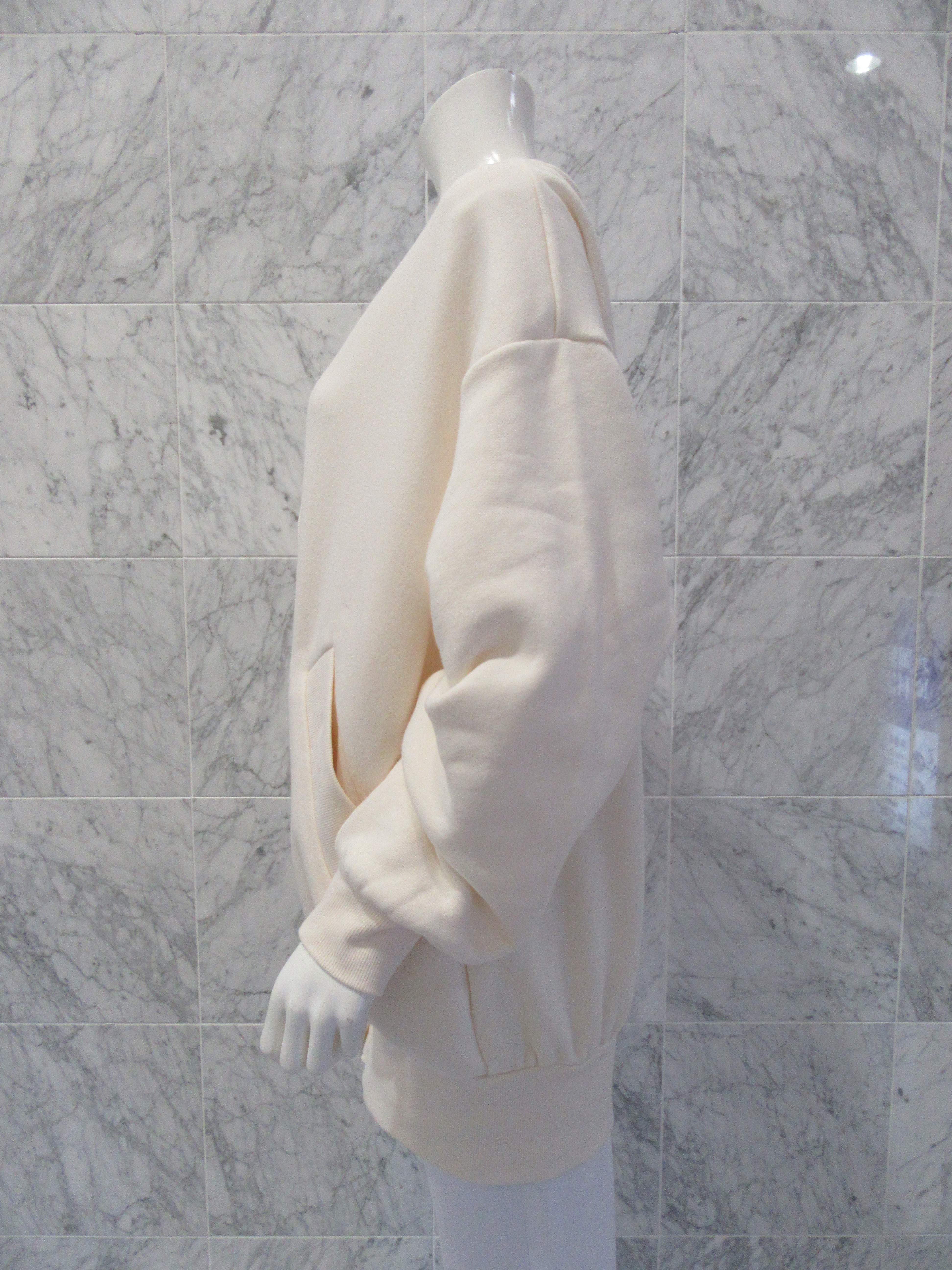 コロンとした釦や大ぶりのポケットなどのディテールが、スウェットでも家着感を払拭し、