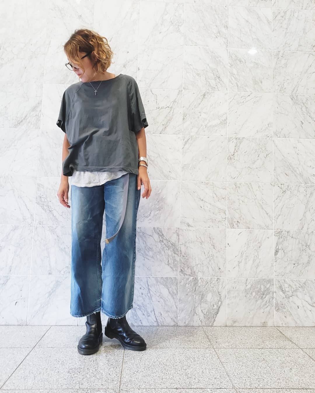 上下リラックスシルエット☑︎ . さり気ないレイヤードスタイルで柔らかさをプラス☑︎ . . #upperhights . . #drmartens @drmartensofficial . . . 🌈News🌈. ボワール長岡では今すぐ『秋コーデ』が、叶うデニム&シューズが人気です👌 . . .