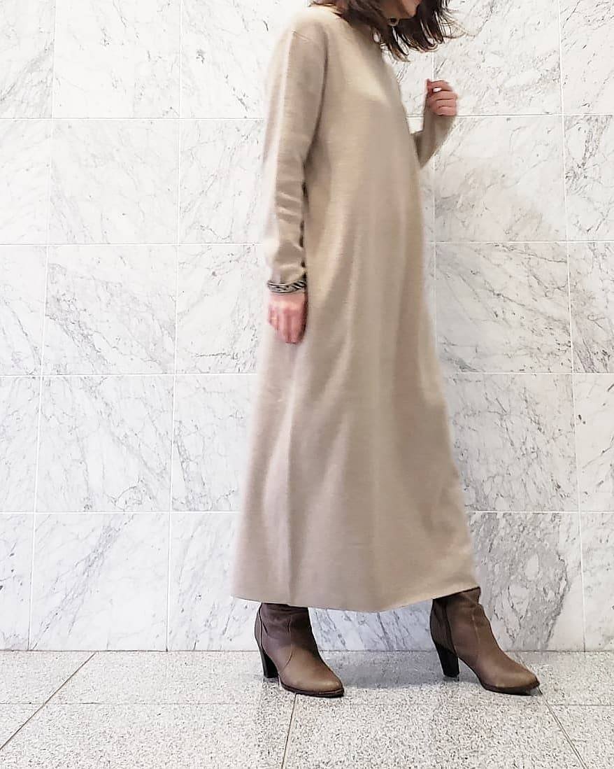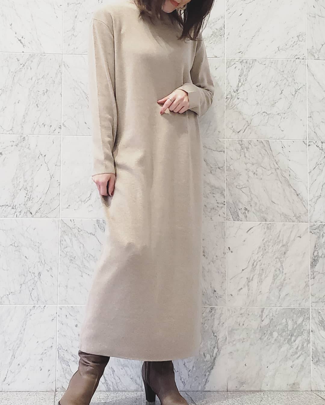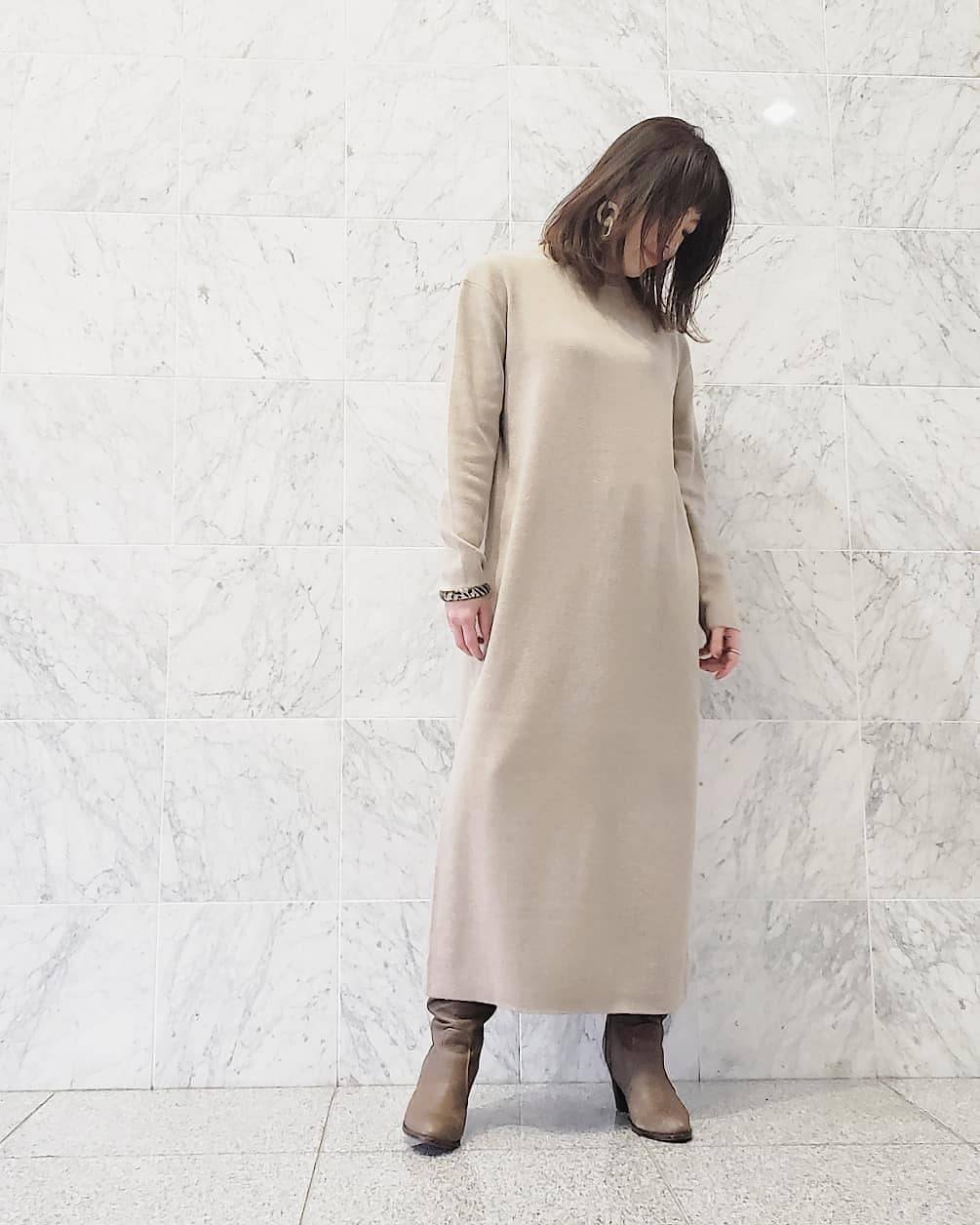 156cmでもすんなり着れるニットワンピース☑︎. . 本当はケープ付きですが今回はなしで☑︎ このワンピースがあれば年末年始楽ちんに過ごせそうです。 . .ニットワンピース#rimark @rim.ark . .