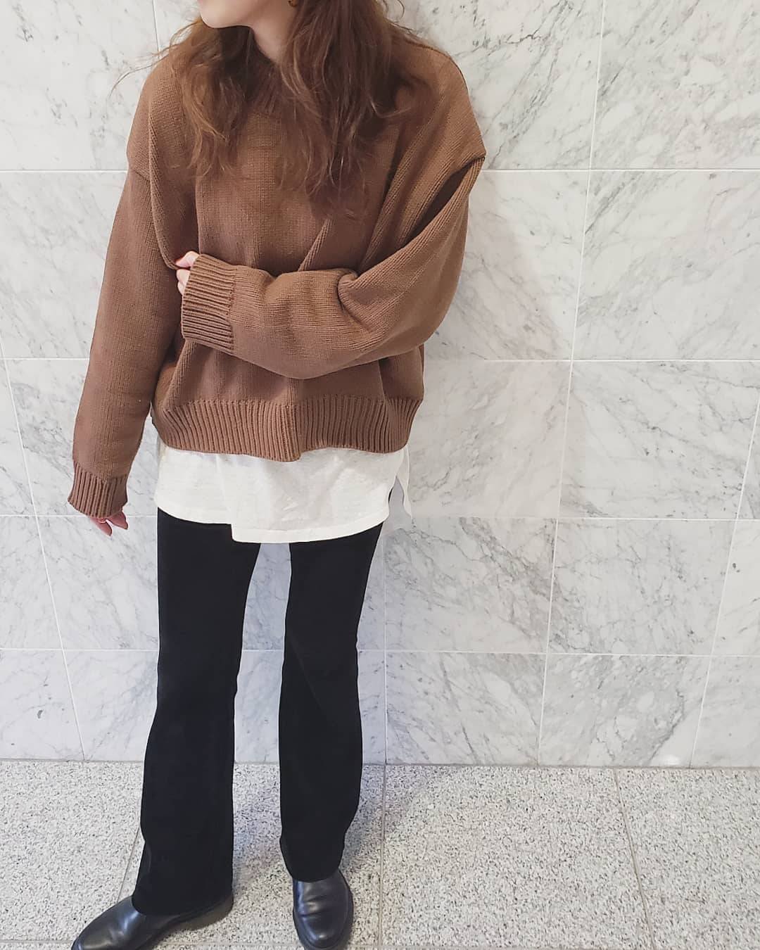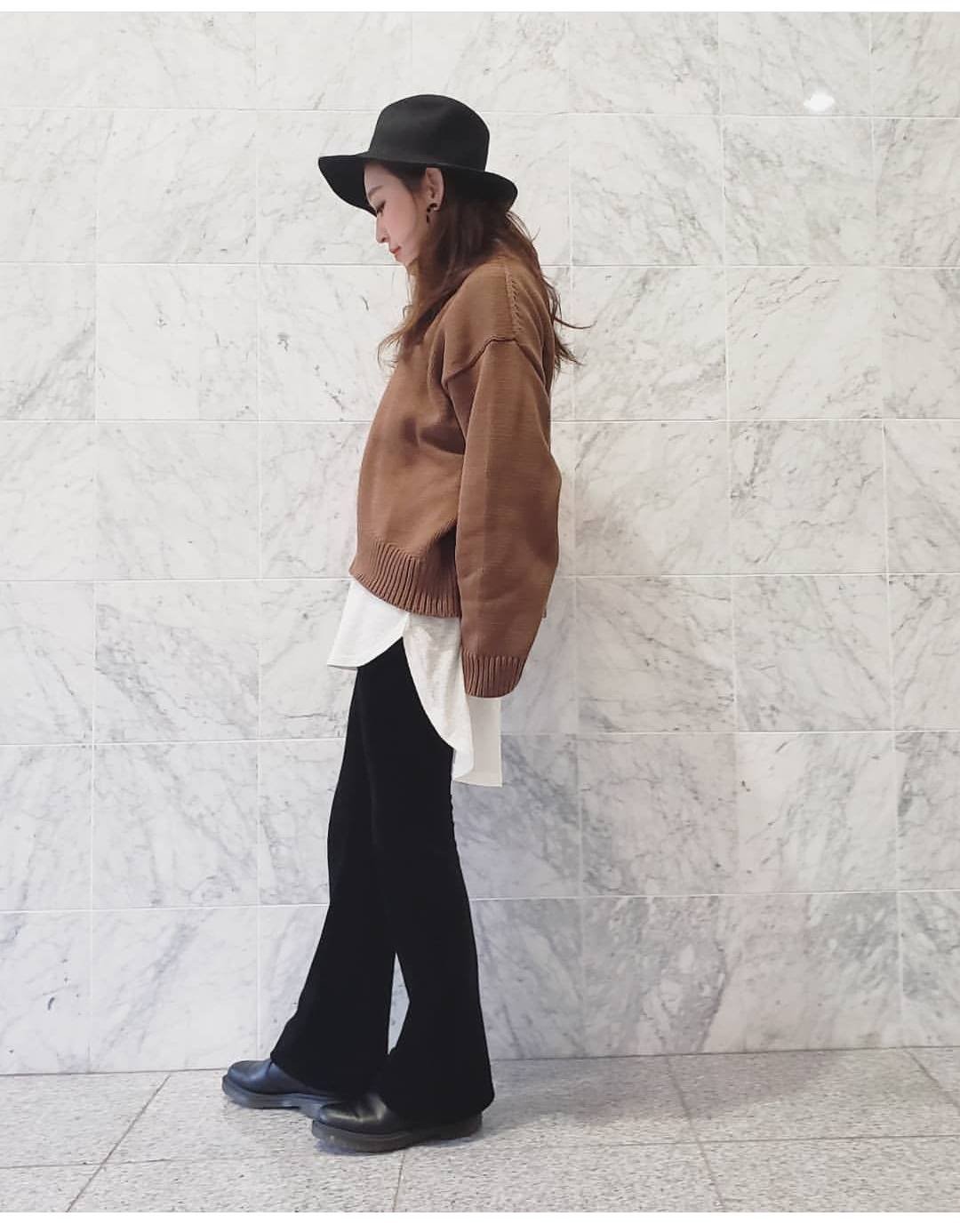 もう定番カラーに、なったブラウン☑︎. 黒とコーデで凝らずともヴィンテージな印象に☑︎ . . . トップス#todayful @todayful_ . パンツ#voirinternational @voirinternational_nagaoka . . . . . . . .