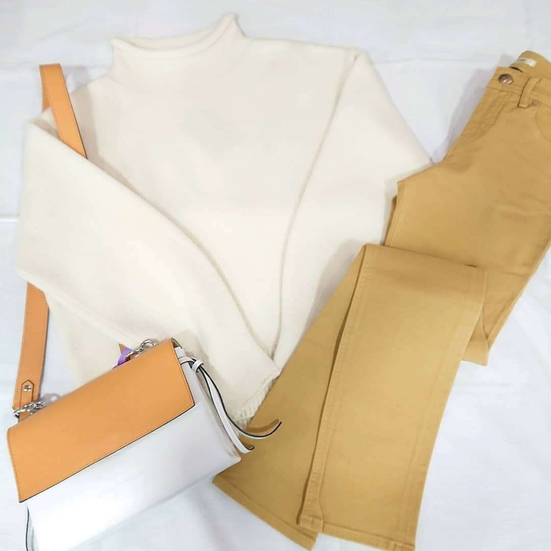 ボトルネックは、顔周りにゆとりを持たせ、小顔効果が抜群です😉✨