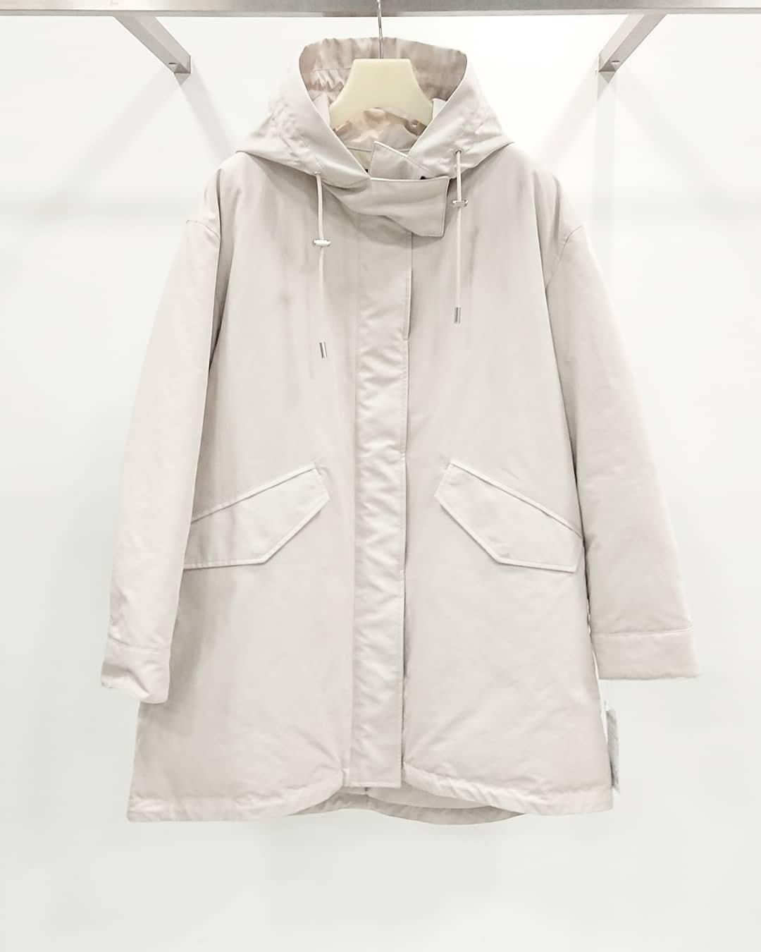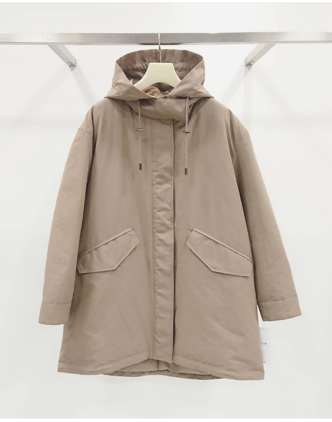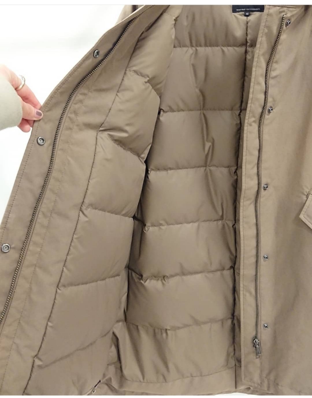 裏地にダウンを入れてあるので暖かさはもちろん見た目はとてもスッキリするデザインです☑️