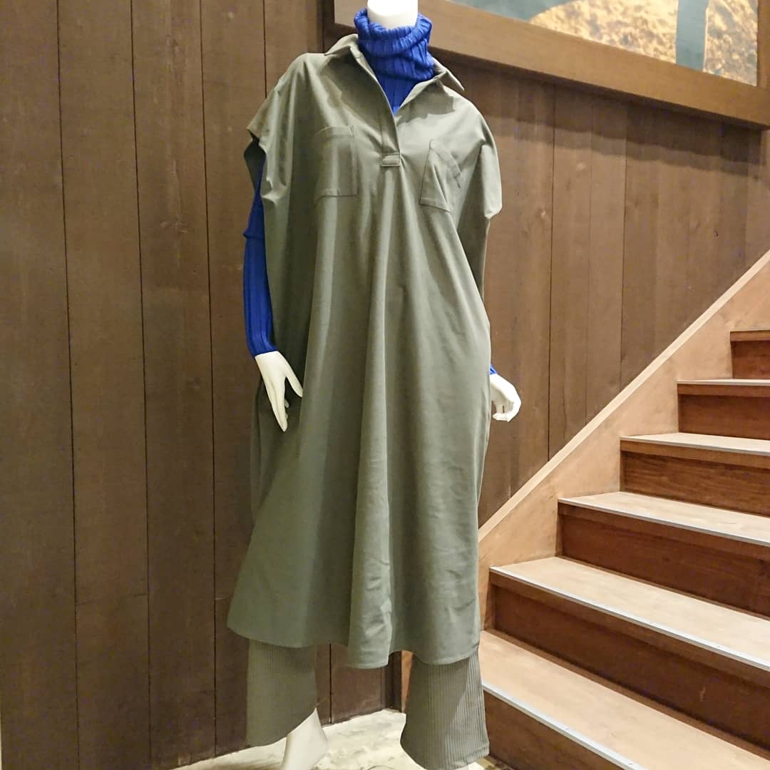 二の腕やお腹周り等、気になる部分をしっかりカバーしてくれるプルオーバーやワンピースは薄手のニットと重ね着がおすすめ💡