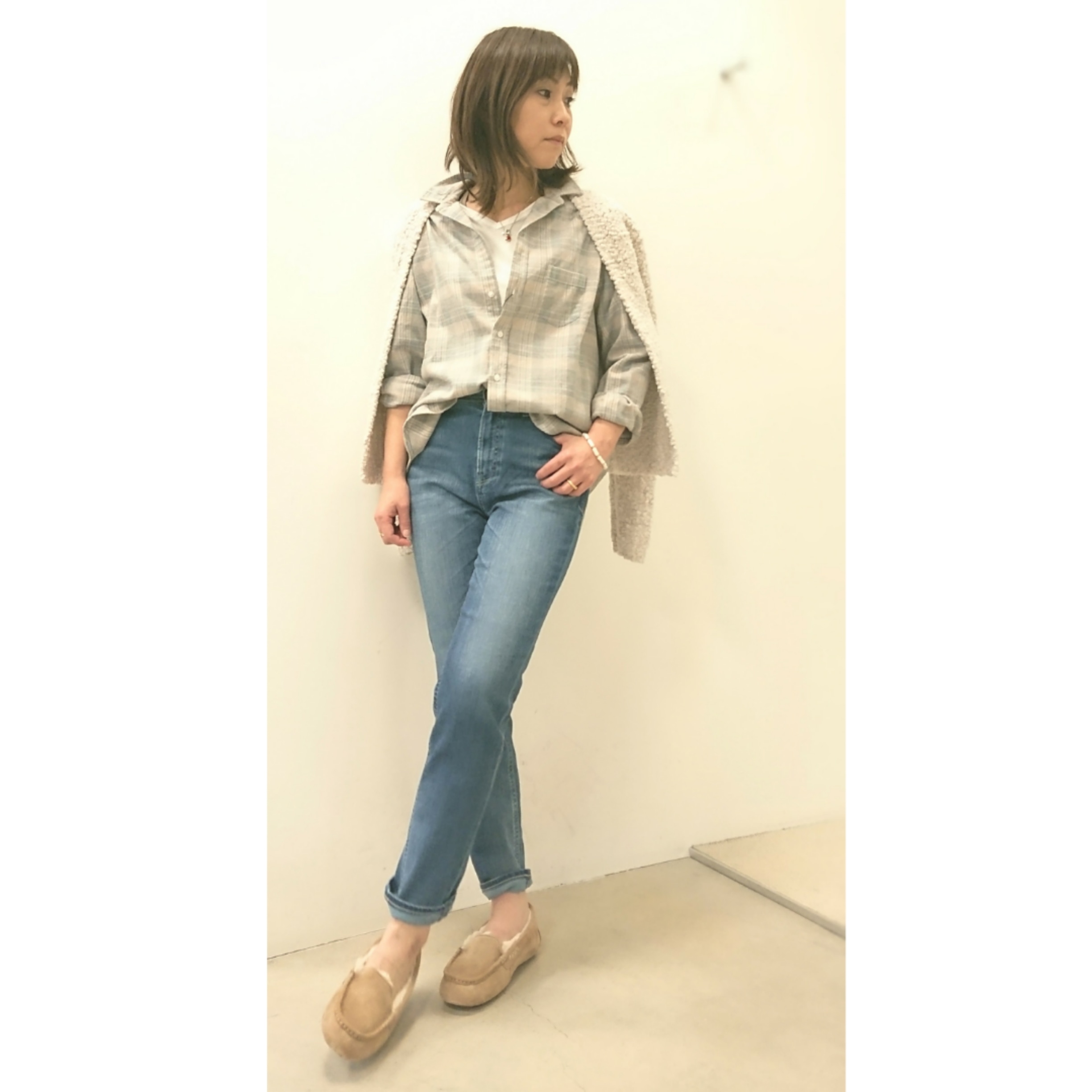 肌寒い日は、@barefootdreams のカーディガンや @ugg スリッポンを合わせて、ウォーム感ある先取りコーデがおすすめ🎵
