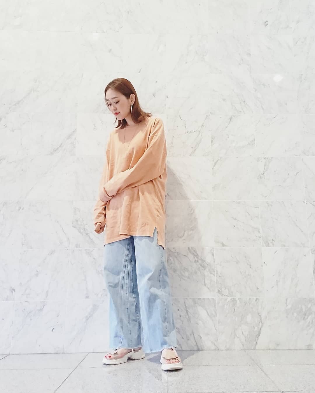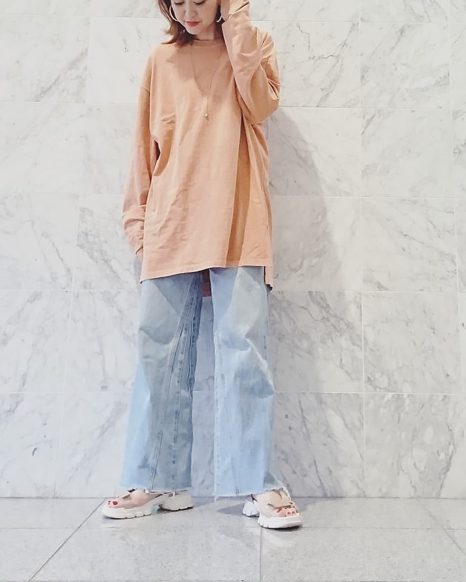 カラートップスには全てニュアンスカラーでヘルシーな印象に☑️