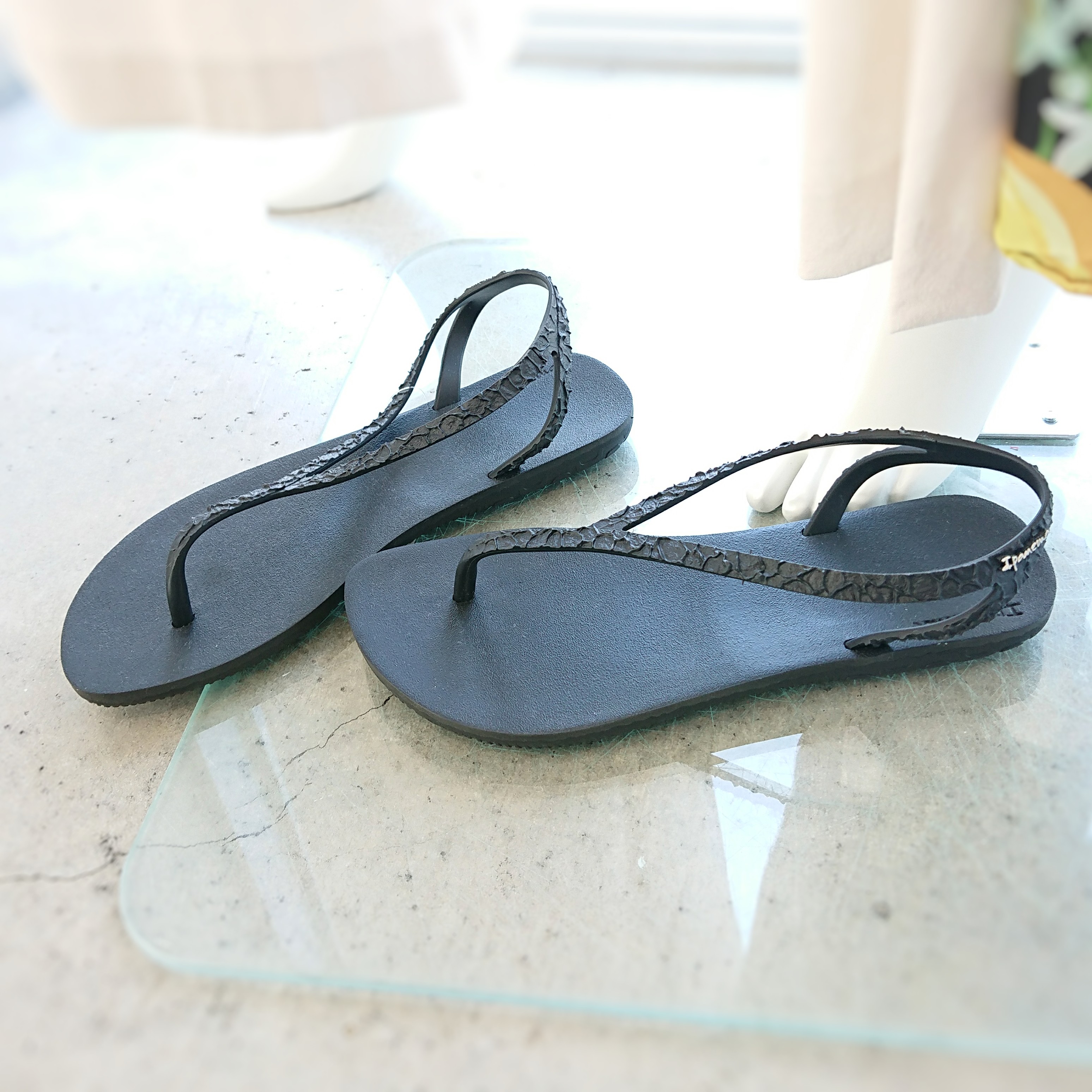 サンダルもモノトーンを選べば辛口の夏コーデに。