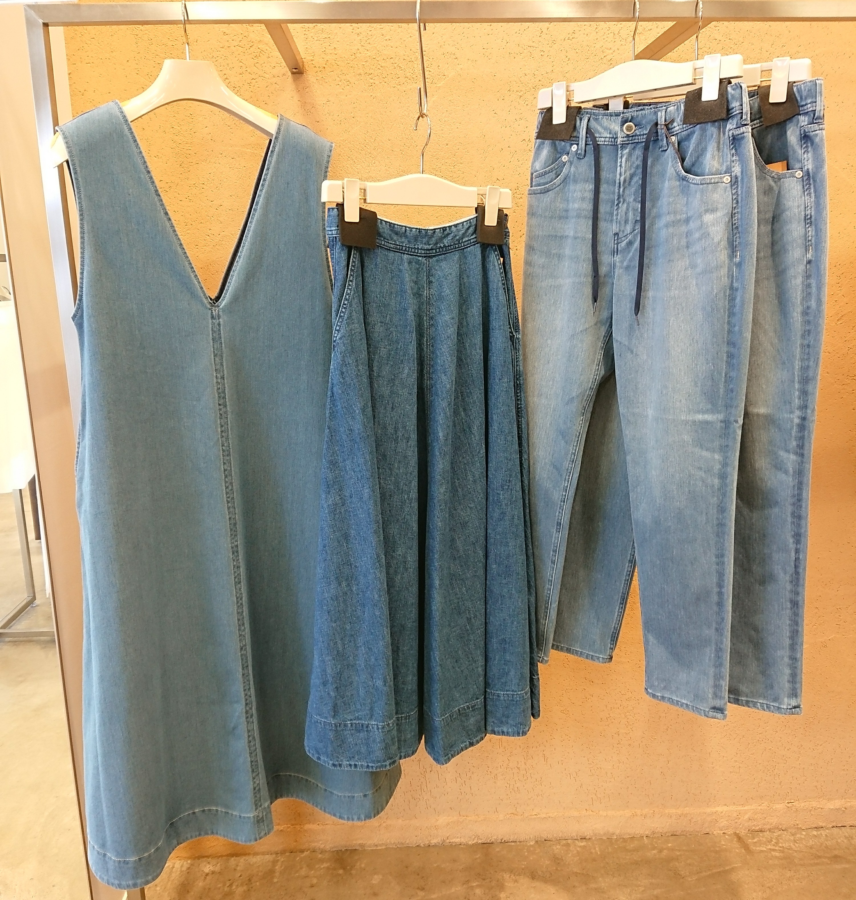 柔らかいDENIT素材を使用したラウンジパンツやジャンパースカート、女性らしいシルエットのフレアスカートなど、今すぐに取り入れられる春アイテムです👌✨