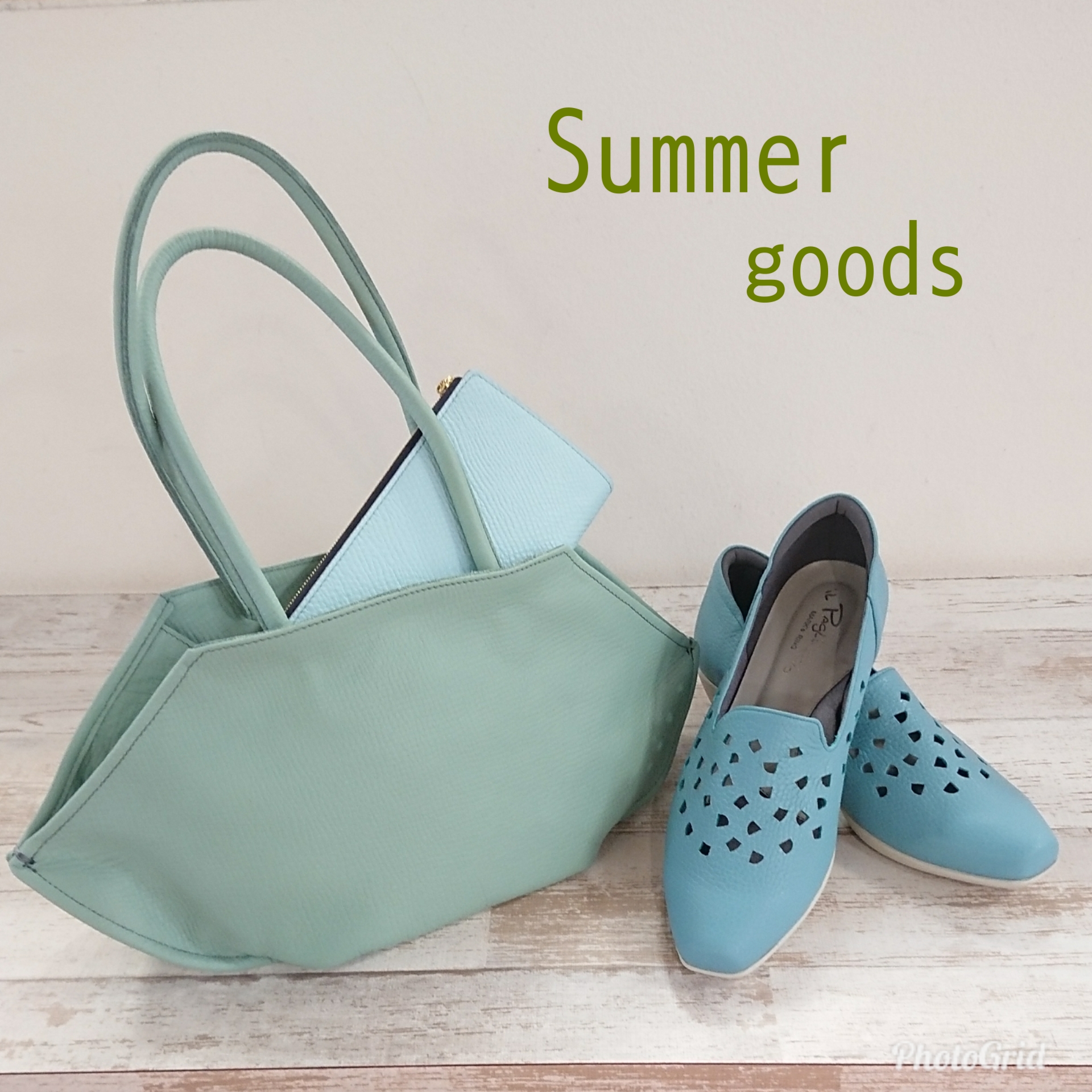 カッティングがクールなバッグと使い勝手の良い長財布、パンチングが爽やかなカジュアルシューズでこの夏を楽しんでみてくださいませ📣