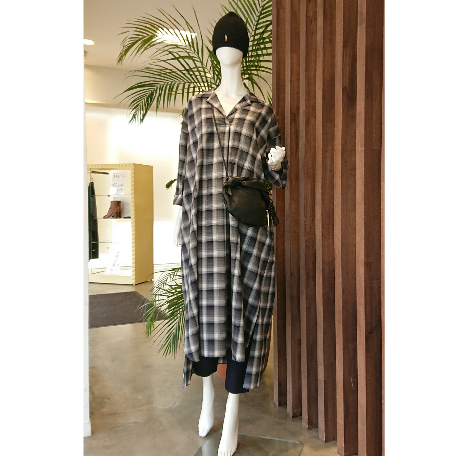 開襟衿のプルオーバー使用でリラックス感のあるサイジングのシャツワンピースです。