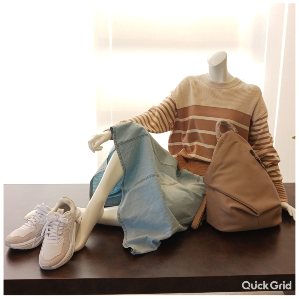 コツトンニットなのでスウェット感覚ですぐに着れ着用期間も長いです。袖、身頃でボーダーの幅が違い、また編み地変があり大人カジュアルに着こなせます😊