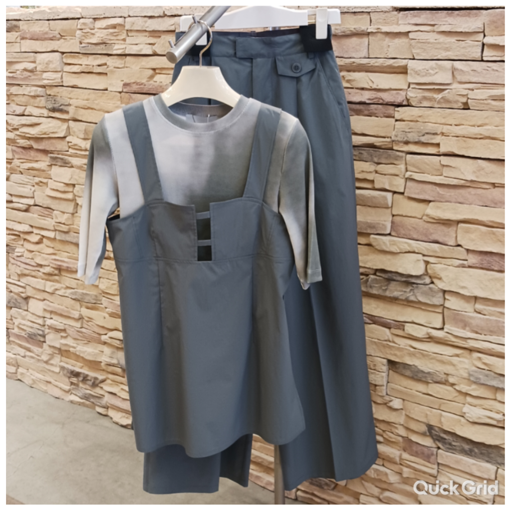 ビスチェタイプのベストとワイドパンツのセットアップは、程よく綺麗めでスタイル良く見えるシルエットです🙆 軽くてシワになりにくく、洗える利便性も兼ねているので汗ばむ夏まで活躍してくれるアイテムです🎵 是非店頭でご覧くださいませ☺️