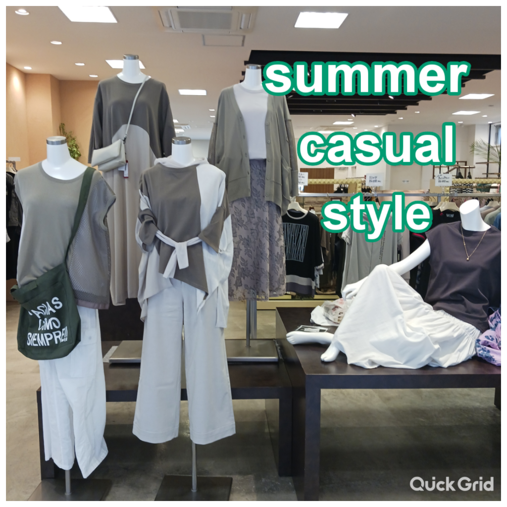 夏のカジュアルスタイルをご紹介します☺️ ナチュラルなアースカラーをベースに、ベージュ、ホワイトで爽やかで清潔感ある印象を表現しました🌴 是非店頭でお楽しみくださいませ✴️