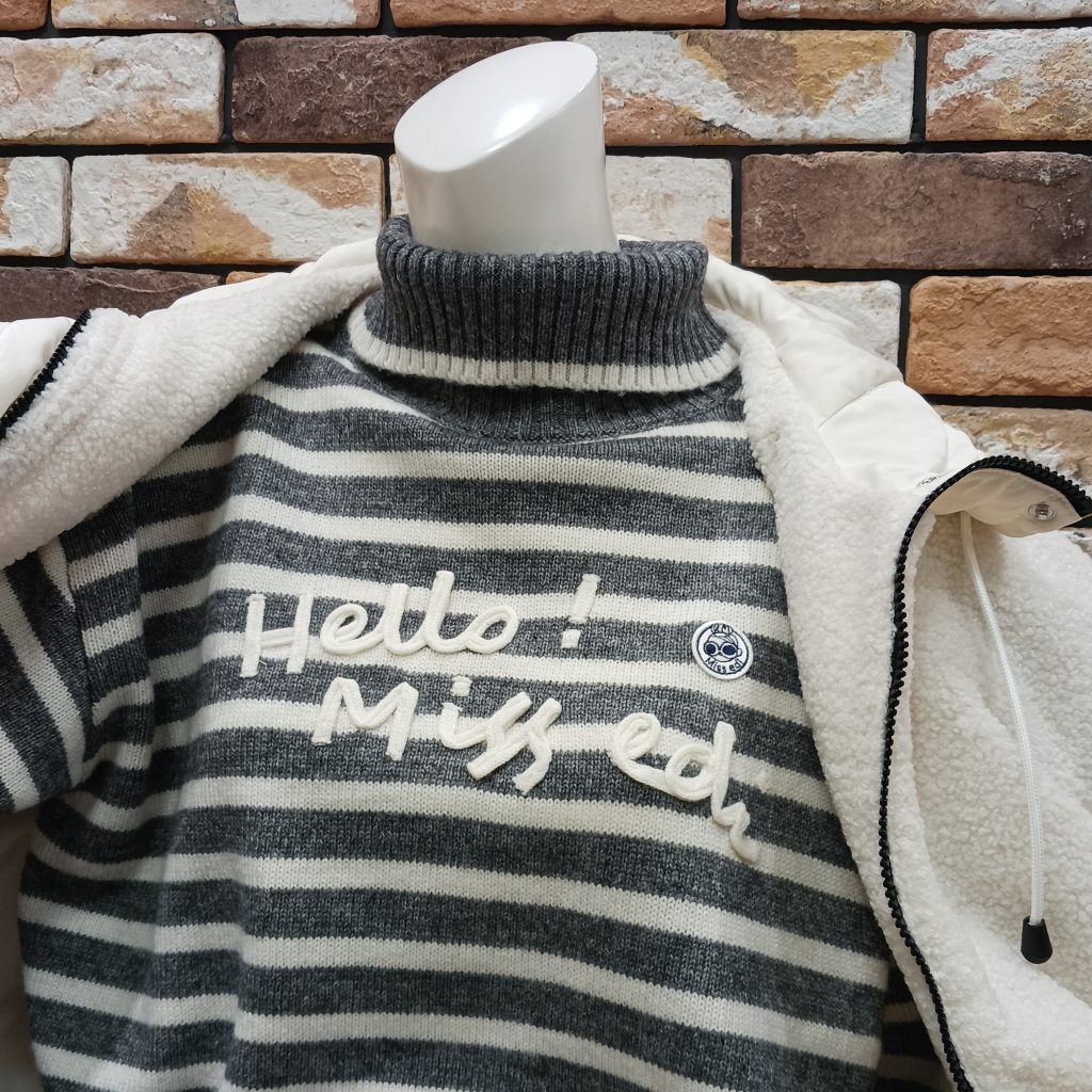 Miss Edi Collection の白いボアブルゾンとグレー×白のボーダーニットのコーデをピックアップしました😊