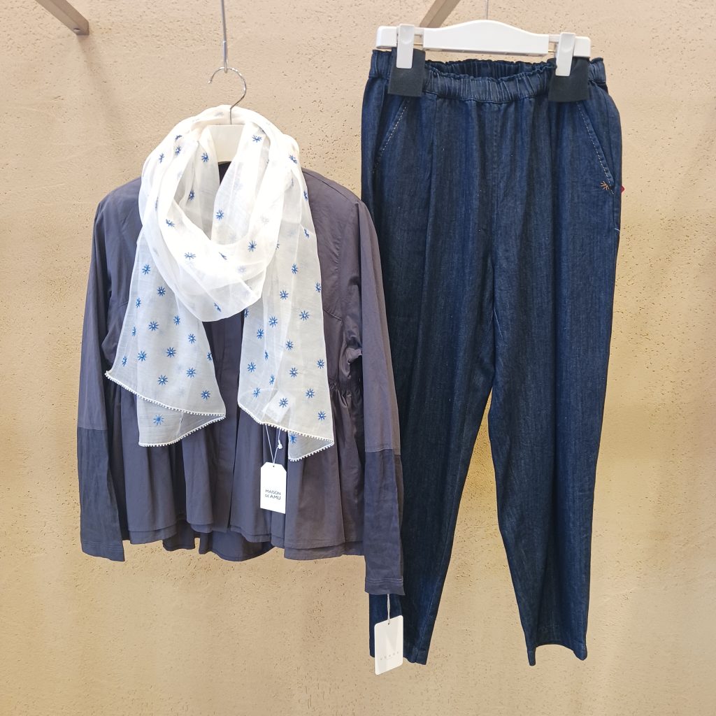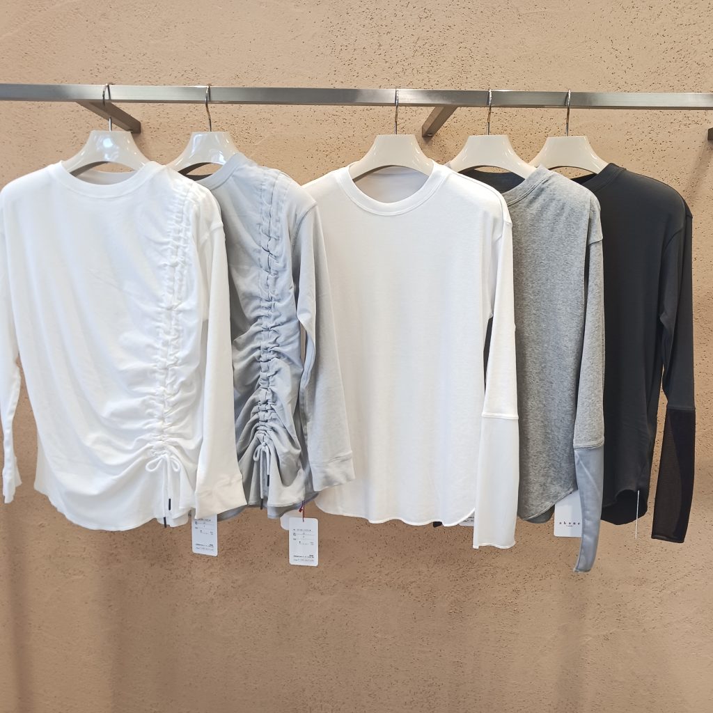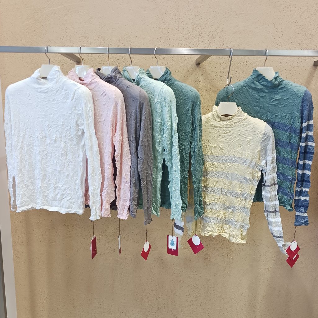 柔らかなカラーリングなシワ加工カットソーは毎シーズン非常に人気が高く、初春のお出掛けもピッタリなおしゃれセットアップも注目です☺️