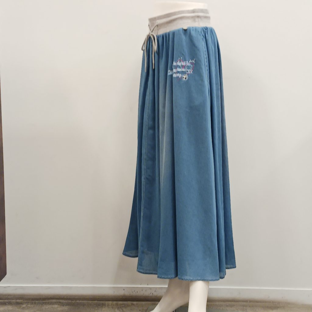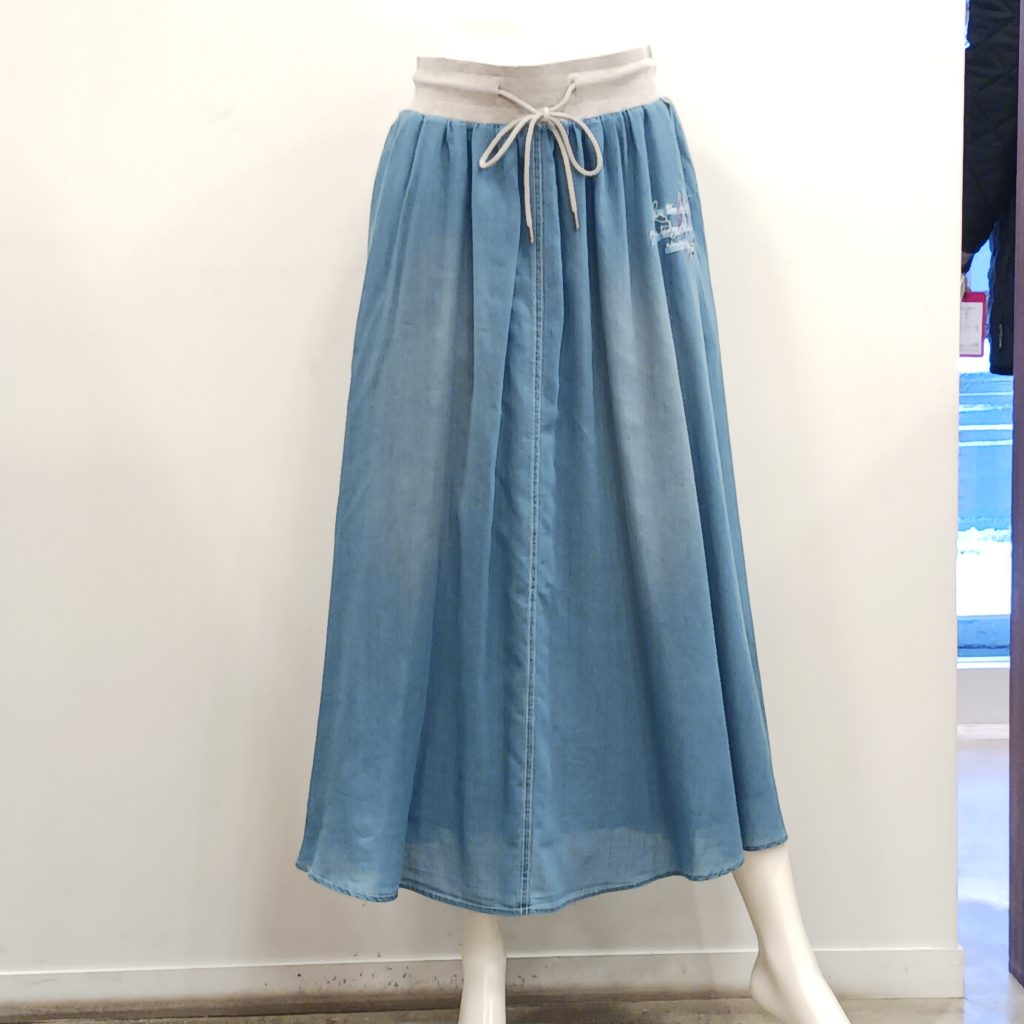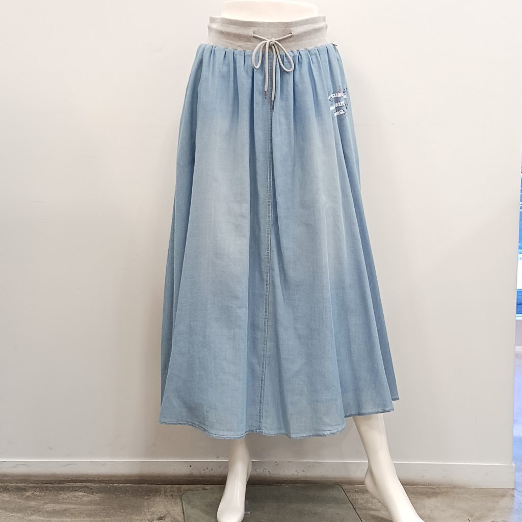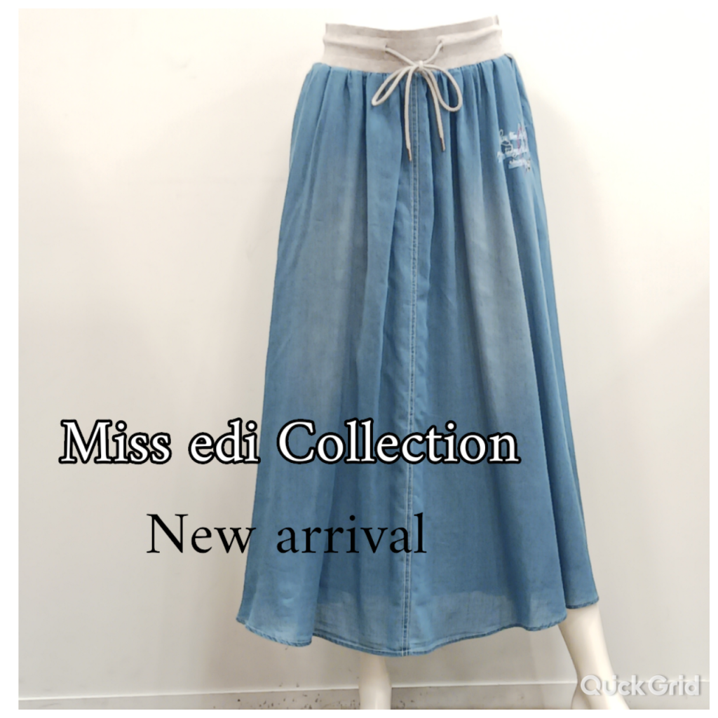 Miss edi Collection より2.2ozの超薄手デニムスカートが入荷しました。ウエストはリブ使いなので穿きやすいです😊