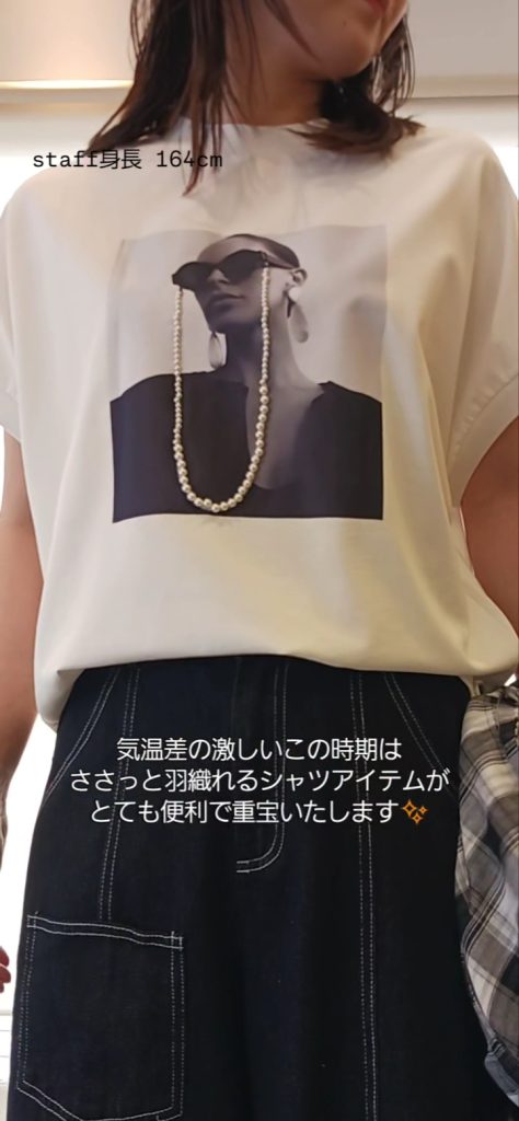 インナーにはパール付きデザインのTシャツで女性らしさも忘れません🙆
