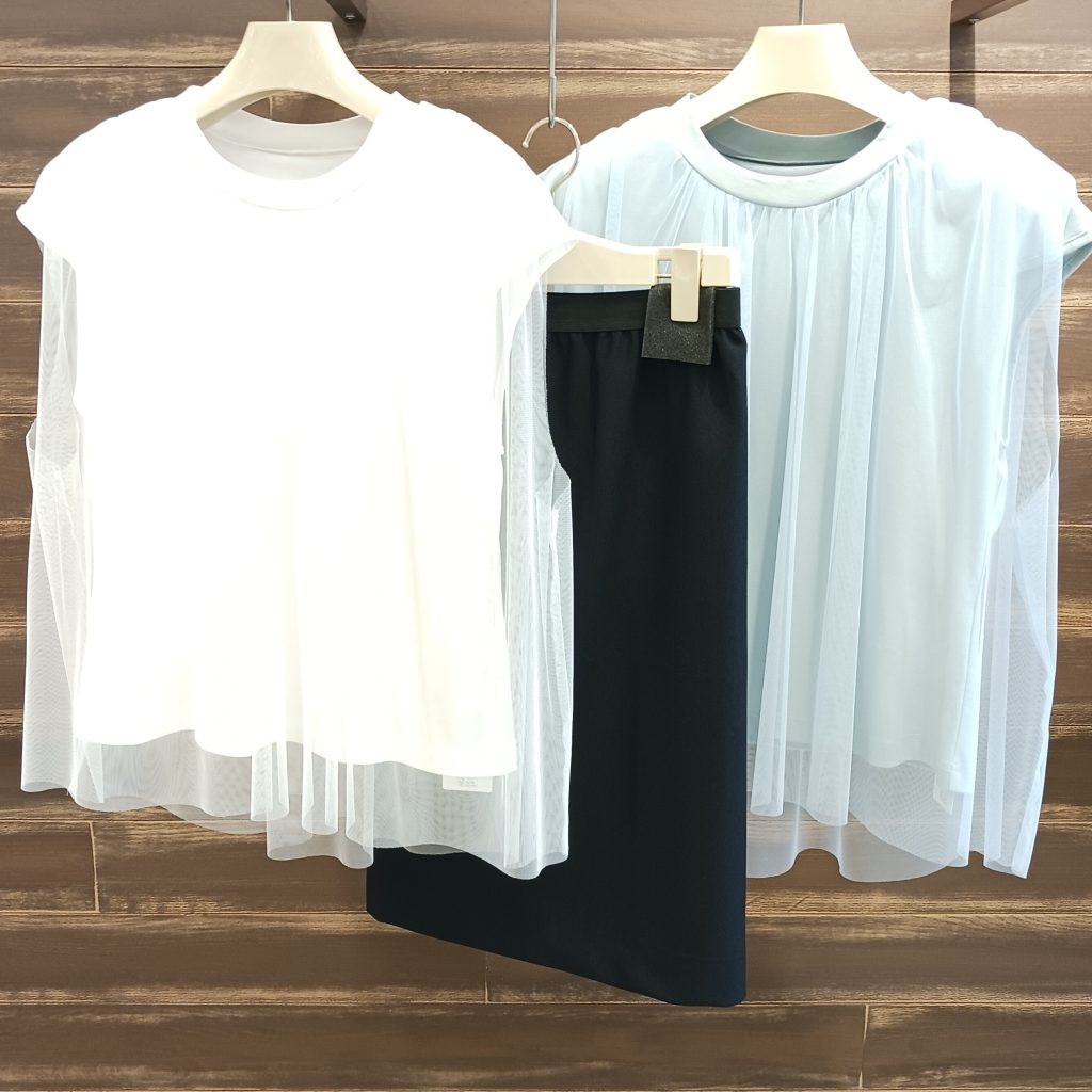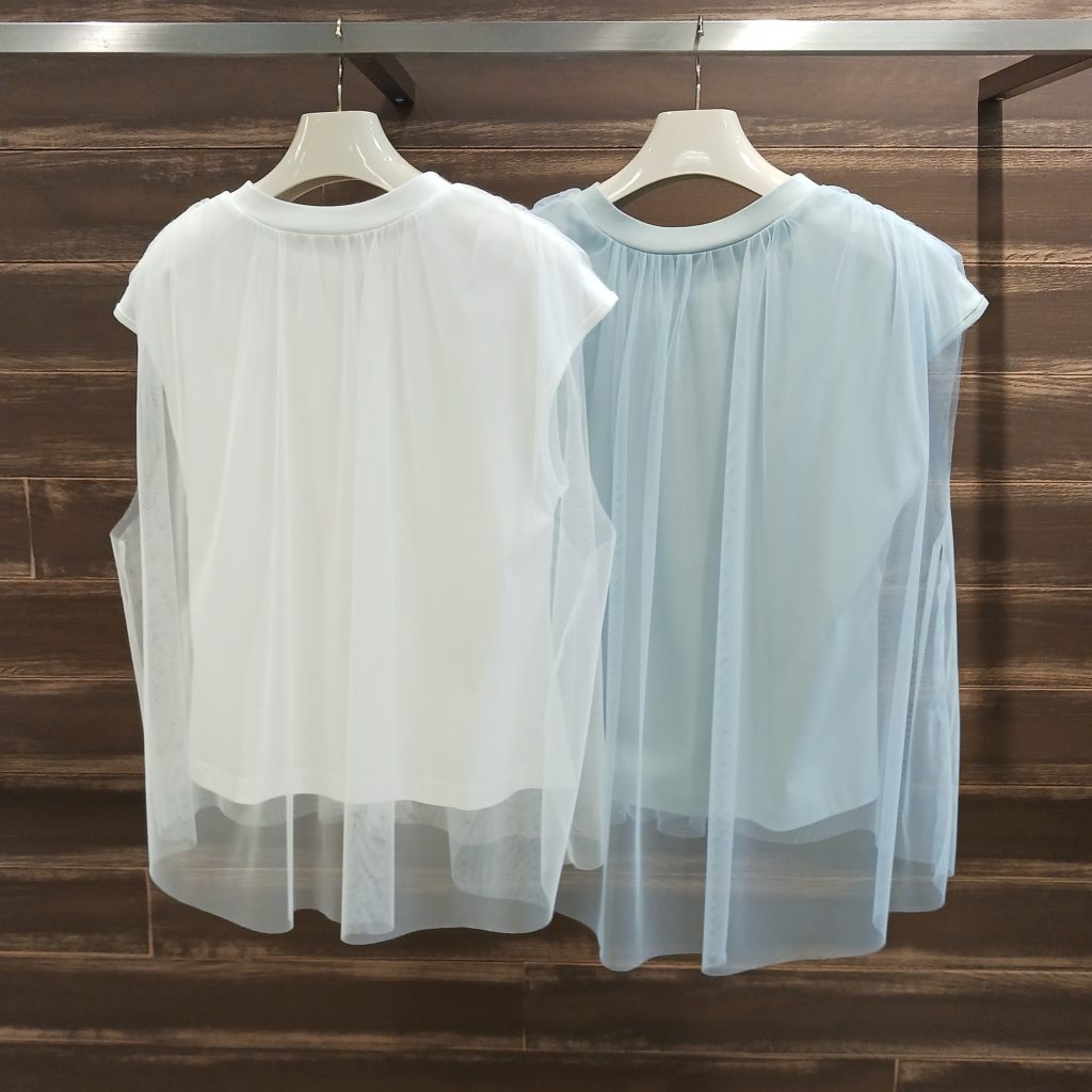 コットンスムースと襟元からギャザーが入ったチュールを重ねています。