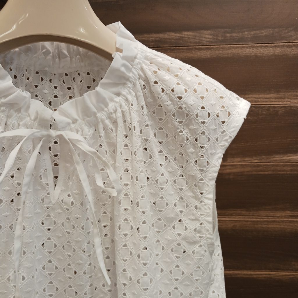 幾何柄のエンブロイダリーレースを使用したノースリーブブラウスです😊