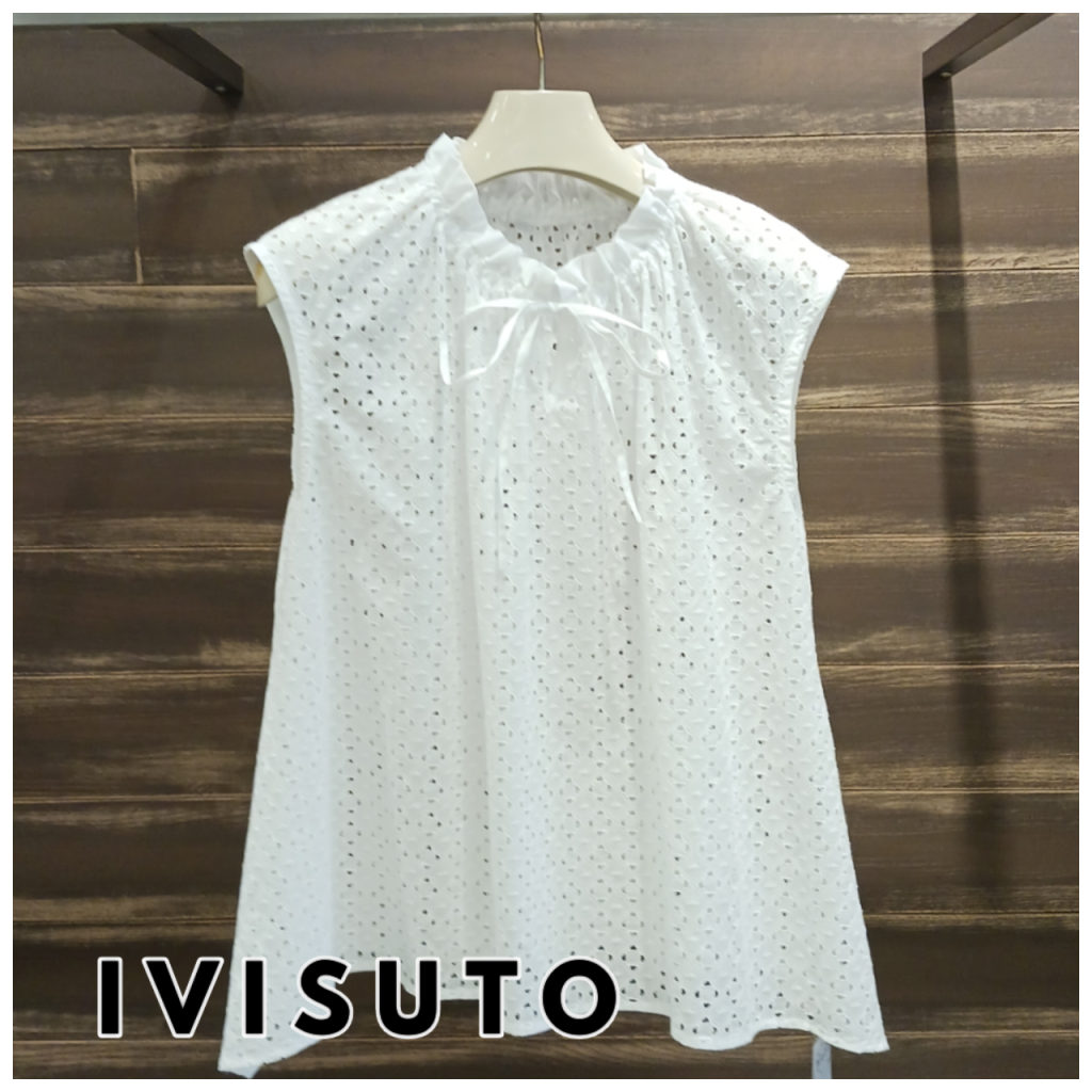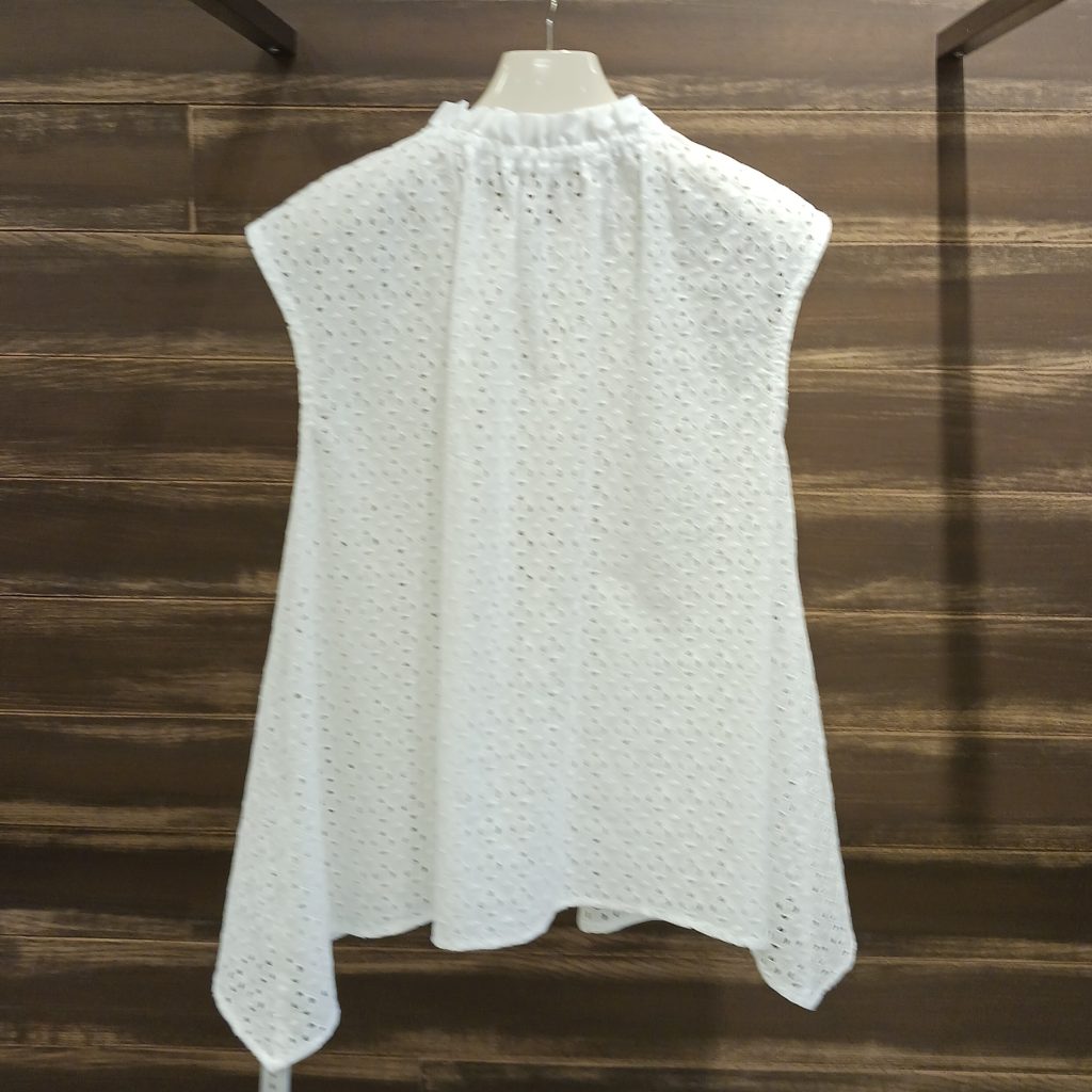 幾何柄のエンブロイダリーレースを使用したノースリーブブラウスです😊