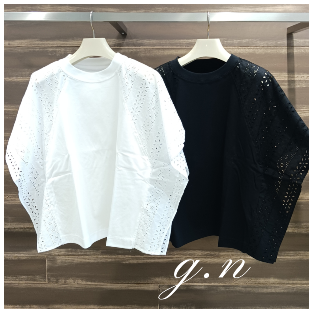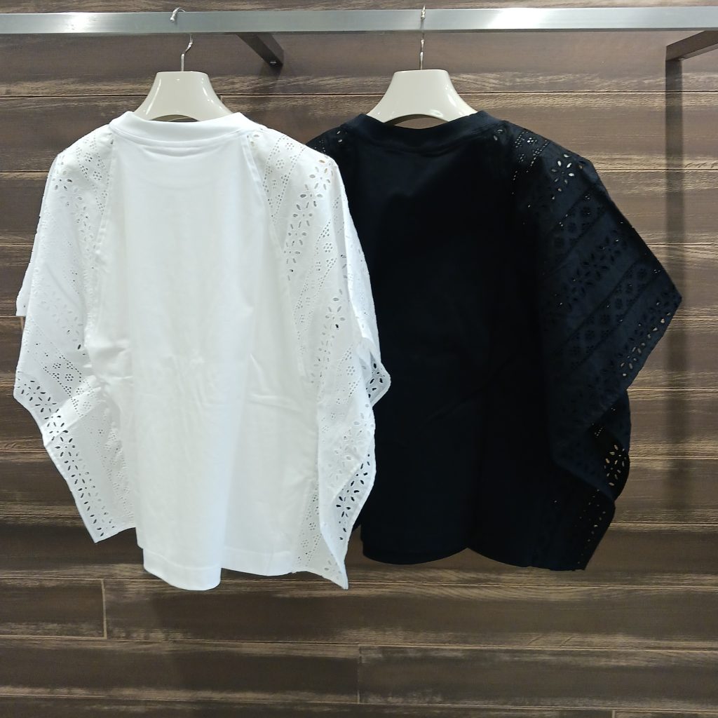 袖と脇に刺繍レースを施したデザインカットソーです😊