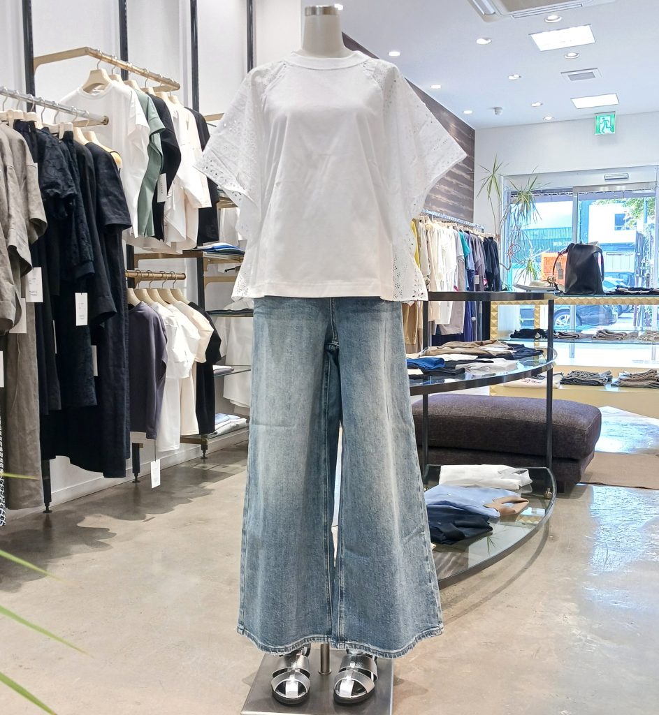 刺繍レース部分は布帛でハリ感、透け感があるレースなので見た目も涼しく着こなせます。