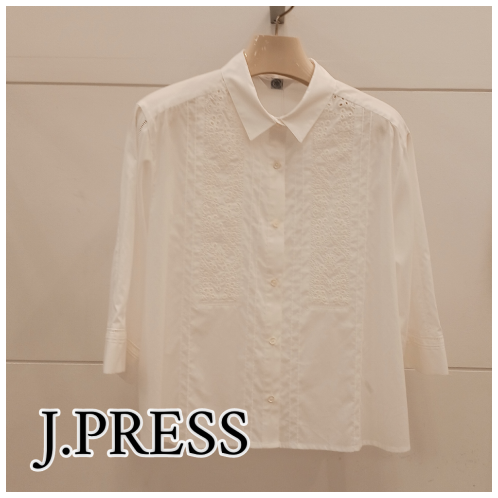 フロント部分と袖に刺繡をほどこしています。またピンタックも入れた華やかさのあるデザインです。
