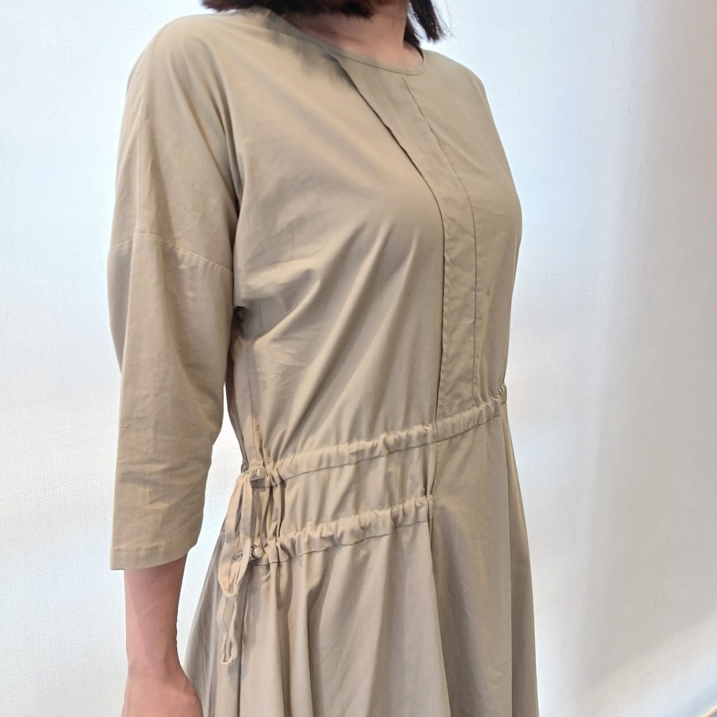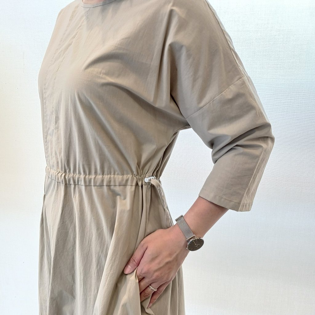ウエスト部分の紐シャーリングでメリハリのあるシルエットを作れます🎵