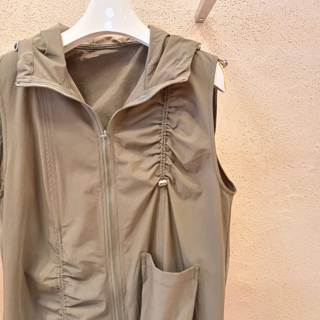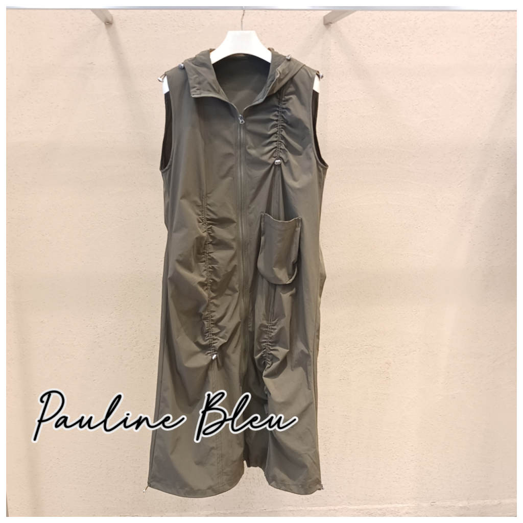 【ピックアップ】Pauline Bleu (ポリーヌブロー)ドロストギャザーフード付きノースリーブジャケットワンピース