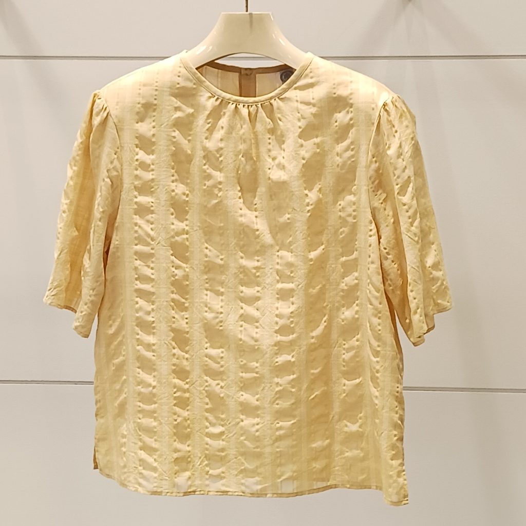 身頃と袖山に寄せたギャザーが程よいボリューム感を与え優雅で女性らしいシルエットに。