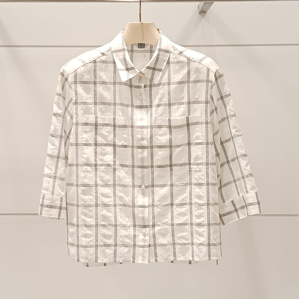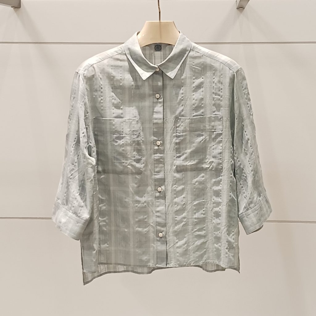 着回し力の高いシャツブラウスは程よくゆとりのあるシルエットに加え、両サイドにポケットを配置することで透け感を抑えつつ、実用性もプラスしています🙆