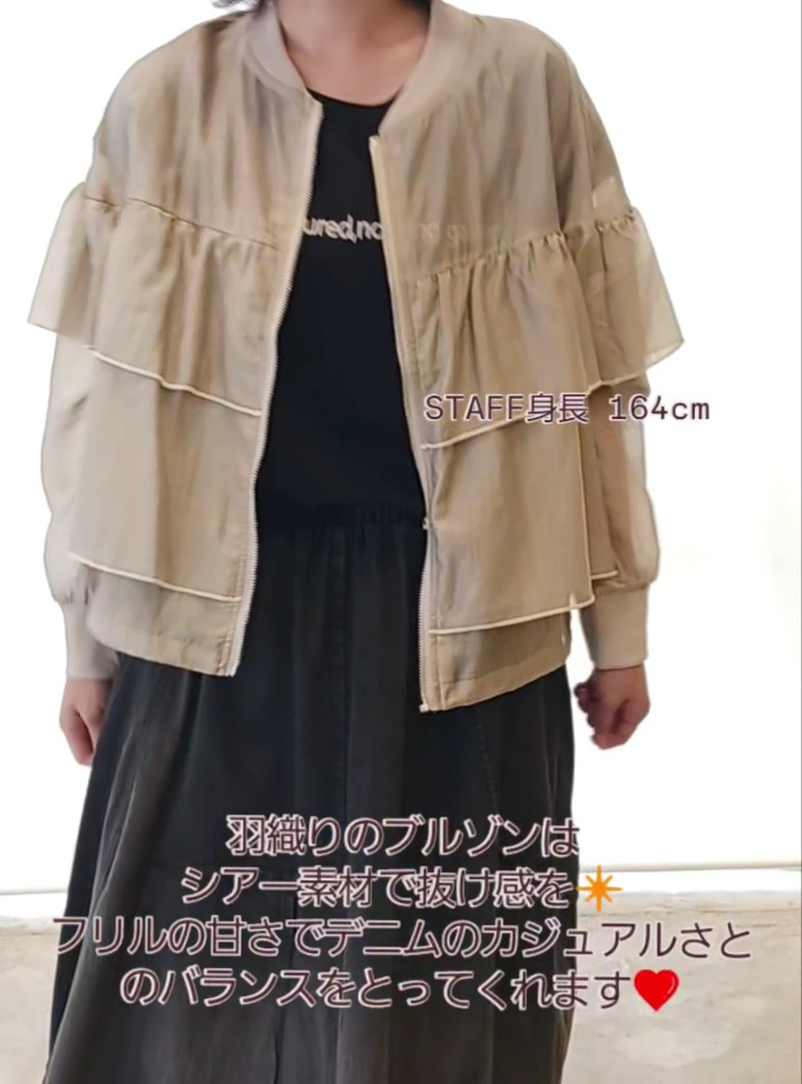 羽織りのブルゾンはシアー素材で抜け感をプラスさせました😌