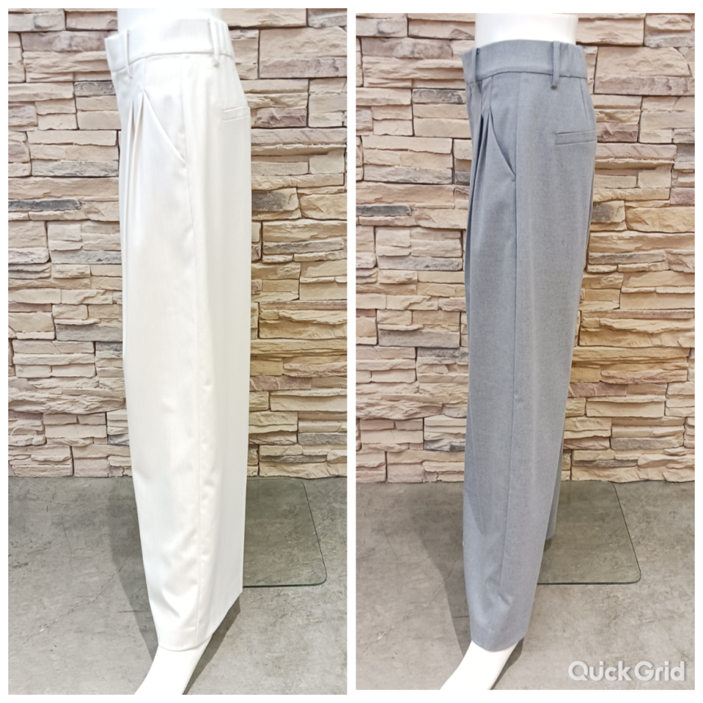 2タックの程よいボリュームがワイドシルエットを引き立て、今年らしい洗練されたスタイリングに最適な一着です🙆