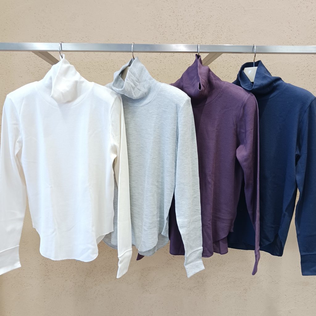 クルーネック、タートルネック、ヘンリーネック、ロングパンツの4型がご覧いただけますので、是非店頭でお楽しみくださいませ🌾