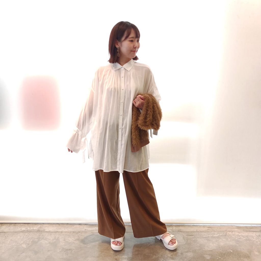 体を包みこむようなシルエットのオーバーシャツや、ワイドパンツで抜け感を演出🎵