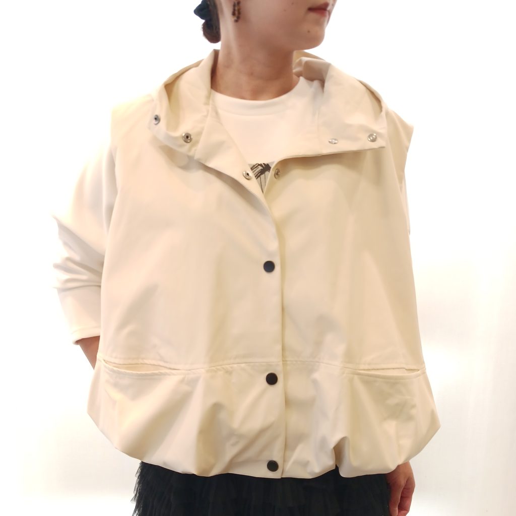 丸みのあるシルエットが魅力のフーディベストはコーディネートに抜け感を演出します🙌