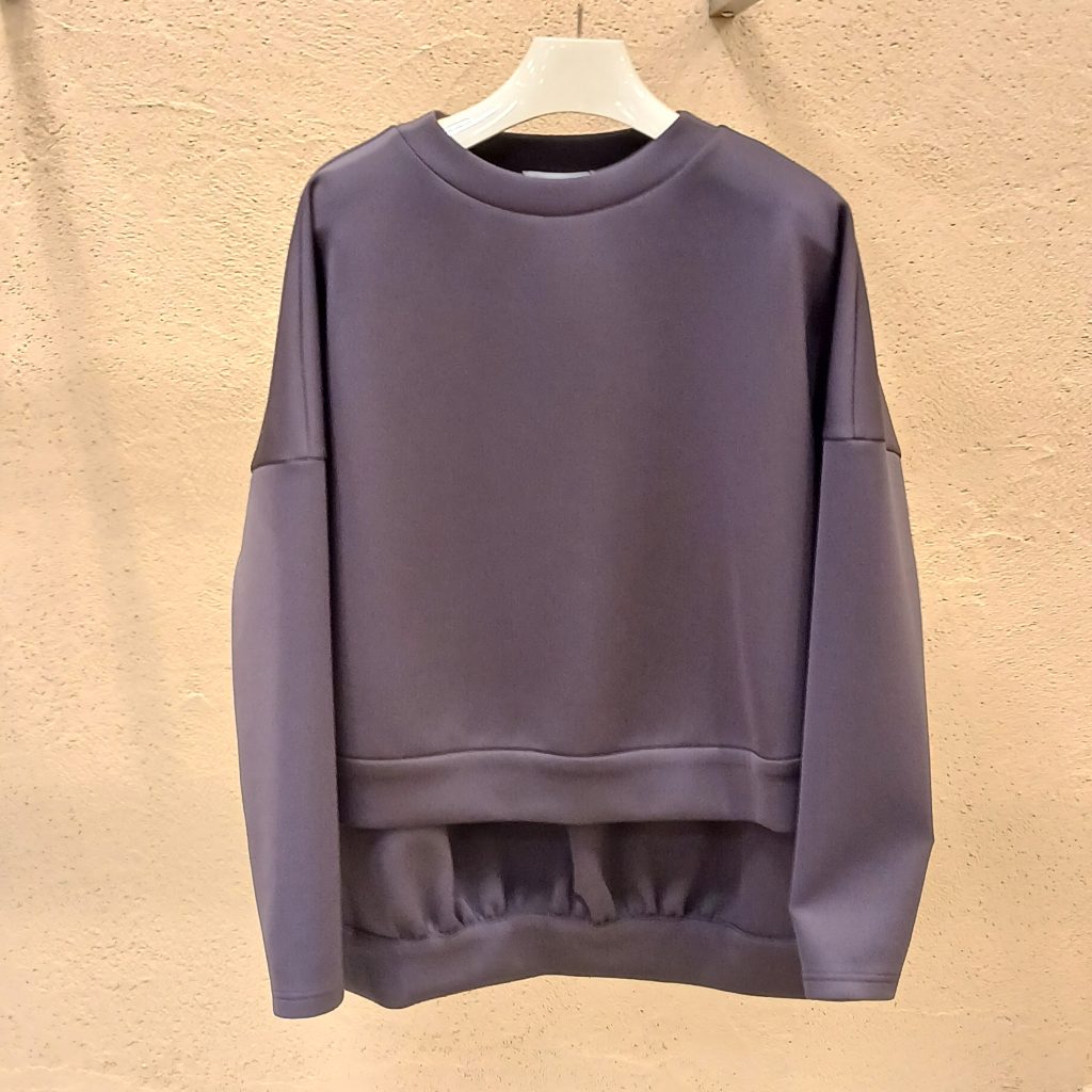 シルクに似た合繊のトリアセテートをハイテンションなポリウレタン混のダンボールニットに仕上げた素材です。滑らかな生地感が大人カジュアルな着こなしに☝️