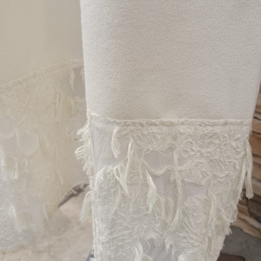 ウール混素材で暖かく、深いVネックや裾の切り替えレースが女性らしさをプラス🙆