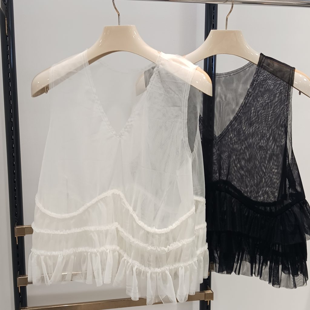 チュールフリルが華やかさをプラスし、インナー次第で着回せる優秀アイテムです。