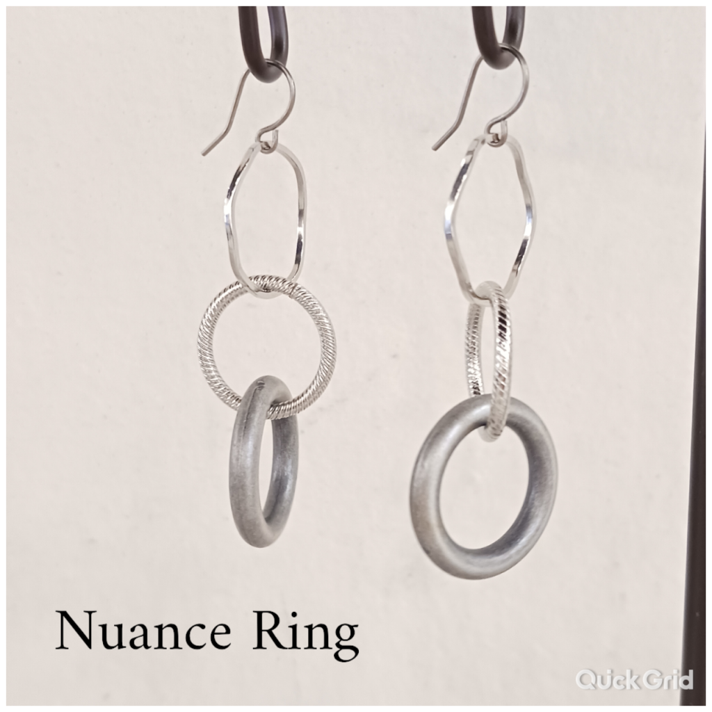 ●トリプルニュアンスリングピアスはシンプルだからこそのカッコ良さとインパクトが光るデザインです。程よいボリューム感ながら軽いつけ心地です。¥2420(税込)