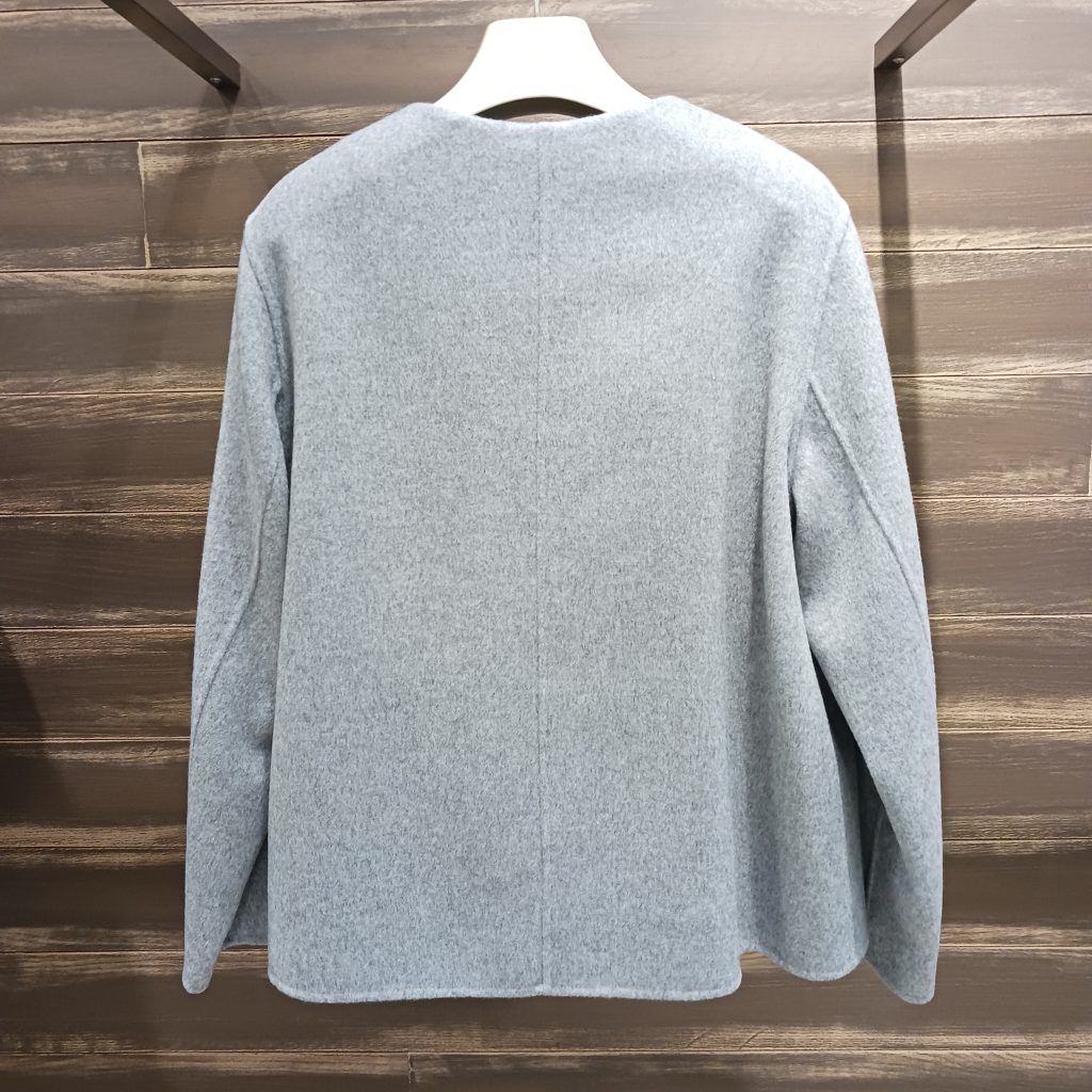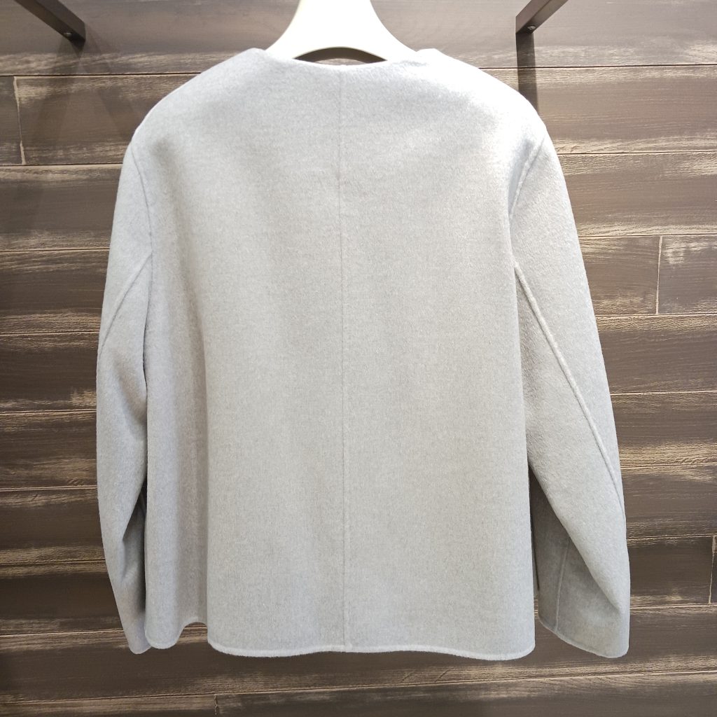 ネックラインをスッキリと見せる効果があるノーカラーは、女性らしい印象を演出します✨
