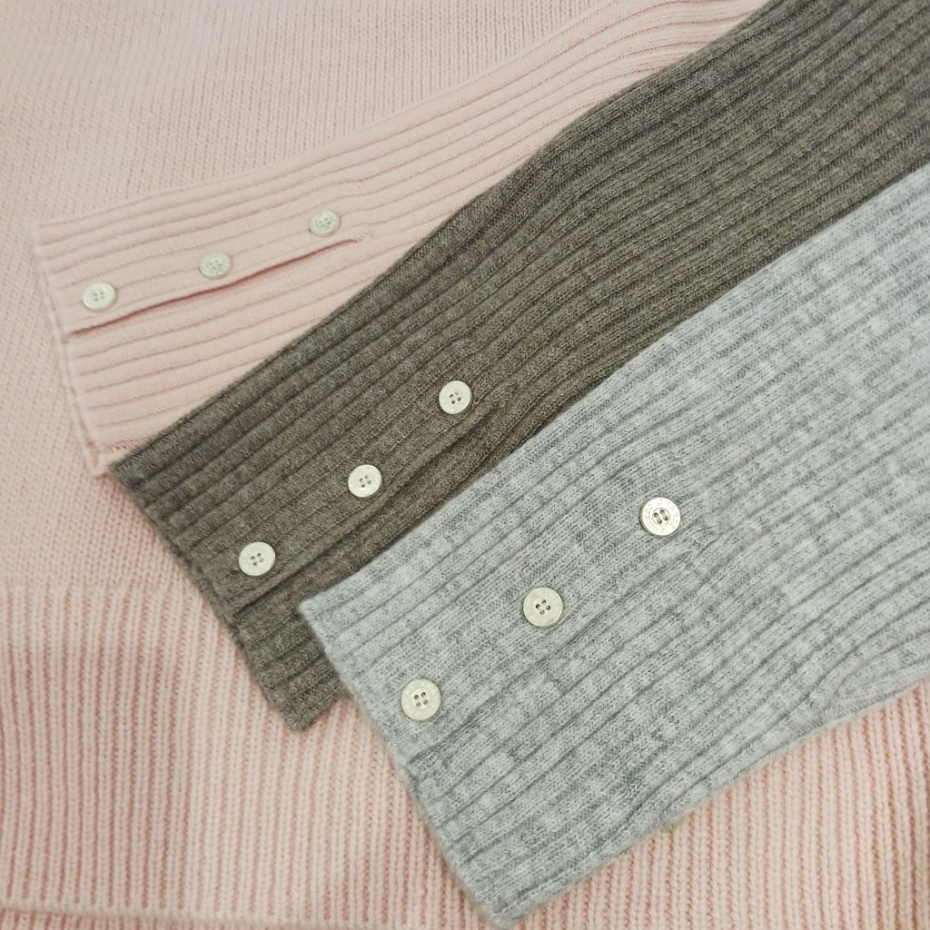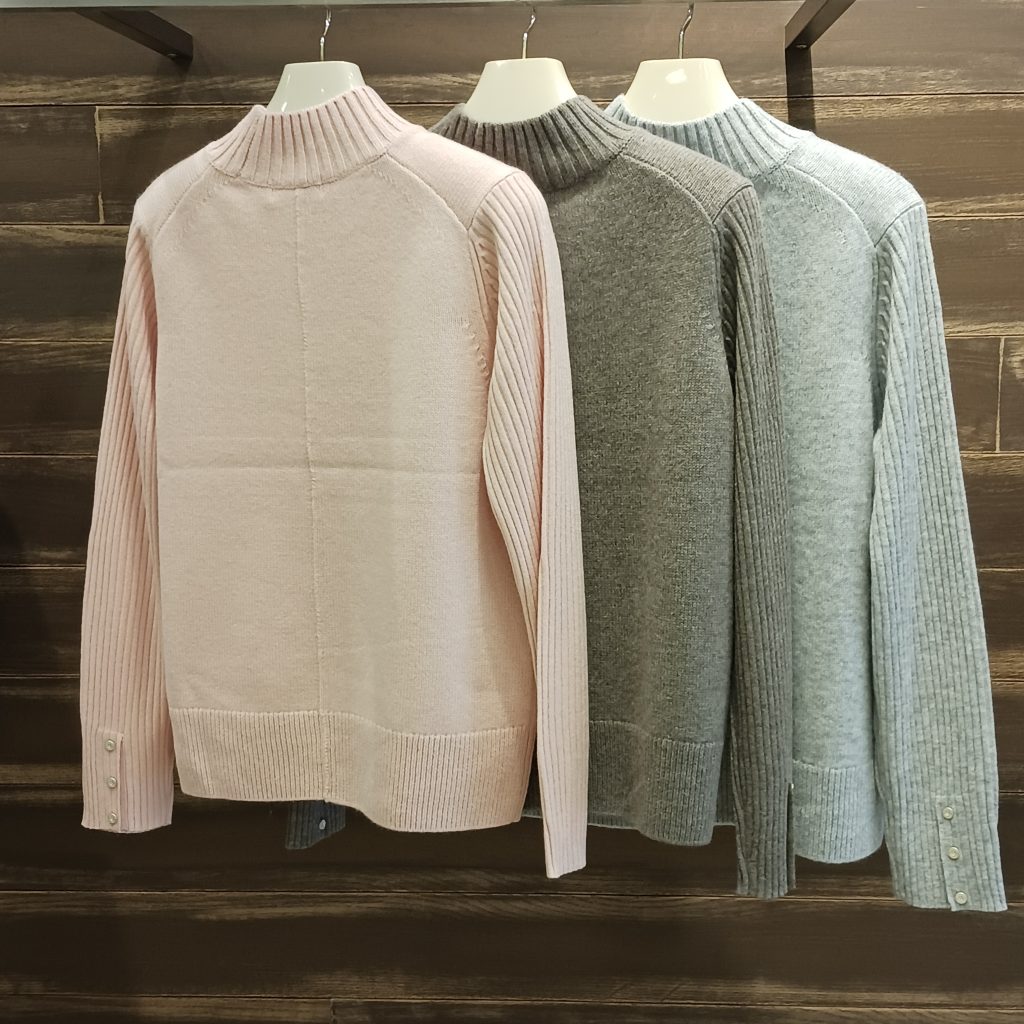 ボディ部分は程よいゆとりを持たせつつ、袖はすっきりと見えるよう薄めに編み立て、スタイルアップして見えるバランスにこだわつています☝️