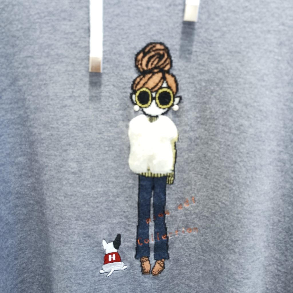 柔らかなタッチで温もりのある合繊素材を使用したフード付きのセーターです☺️